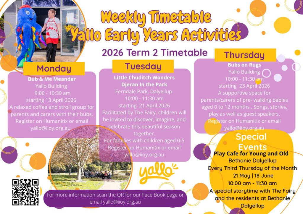 Yallo also offers free parenting workshops in partnership with Parenting Connections WA to support parents and caregivers of children to improve the wellbeing and development of their children.